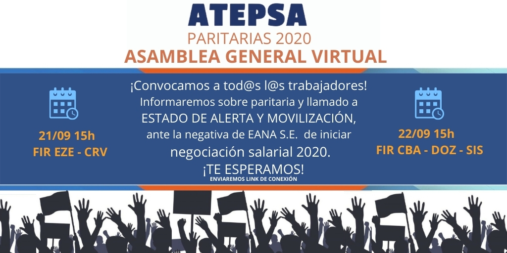 Estimados compañeros/as, usuarios y público en general: Les comunicamos que en el día de la fecha se realizó una Asamblea General de trabajadores de EANA con el fin de analizar la propuesta realizada por el empleador en el marco del Conflicto Art. 80 del CCT 1512/16. A tal efecto, informamos que el mismo contó con Leer másMESA DE DIÁLOGO[…]