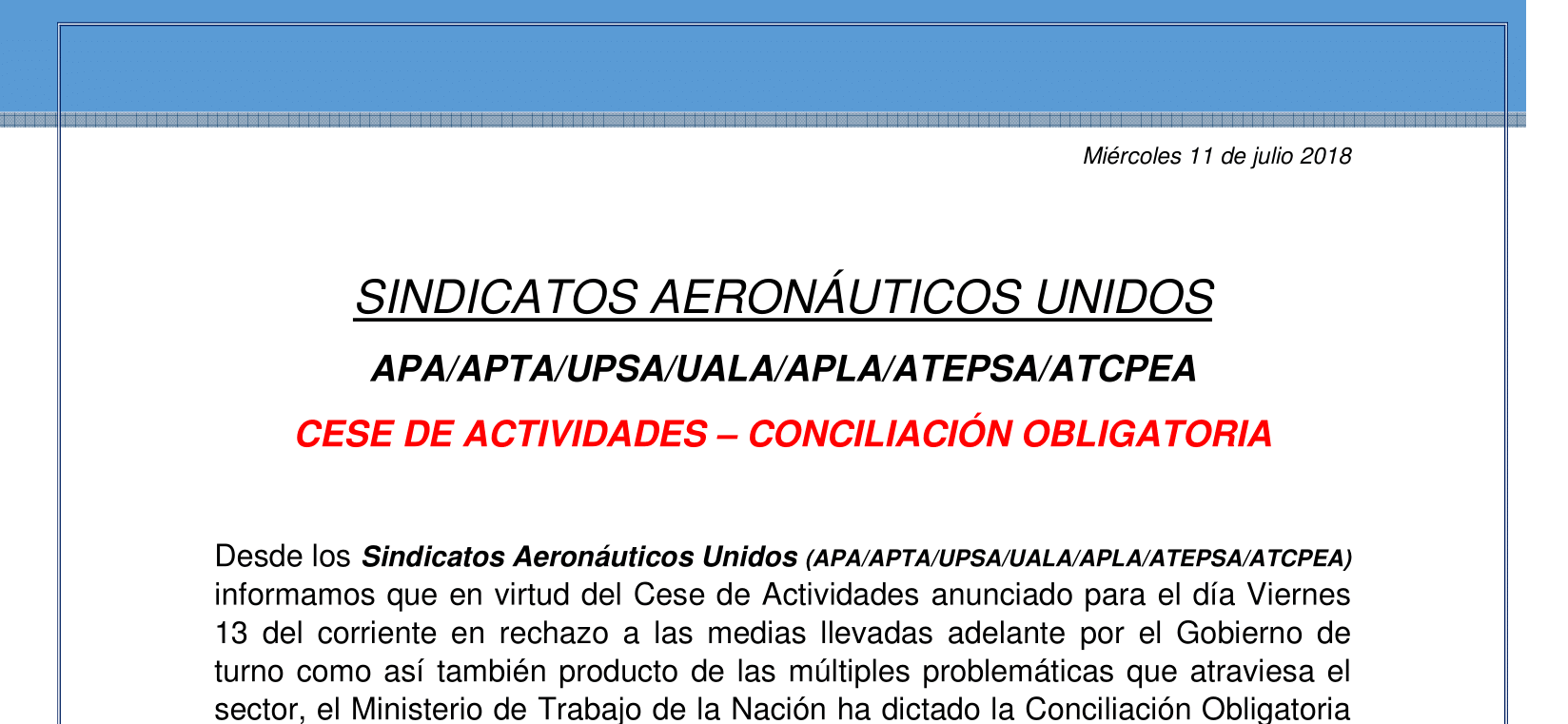 Los sindicatos aeronáuticos daremos pleno a la conciliación obligatoria […]