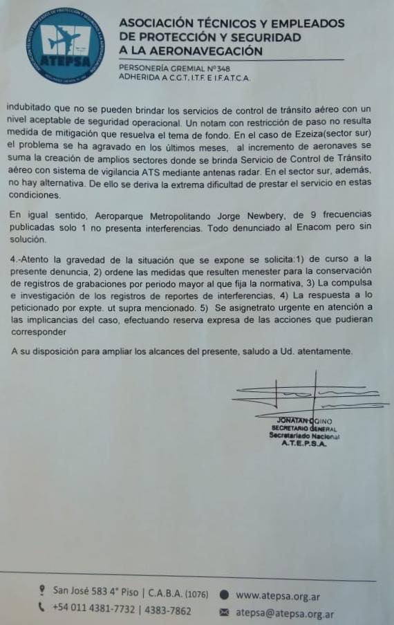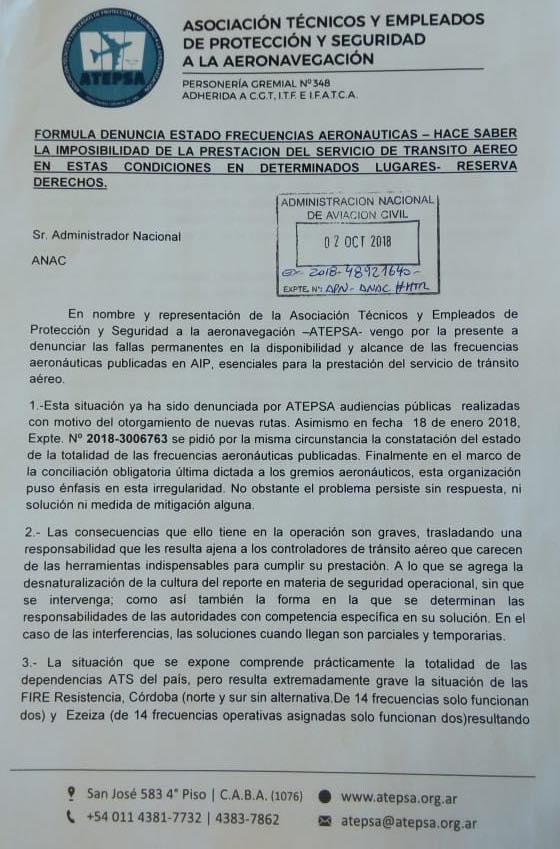 En el día de la fecha ATEPSA formalizó una nueva denuncia ante la ANAC, debido a la falta de respuesta y solución a un tema esencial para la prestación del servicio.