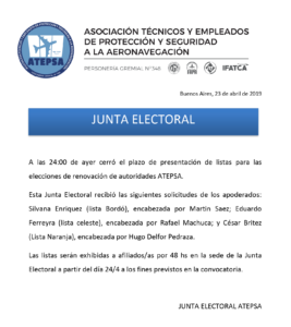 A las 24:00 de ayer cerró el plazo de presentación de listas para las elecciones de renovación de autoridades ATEPSA.