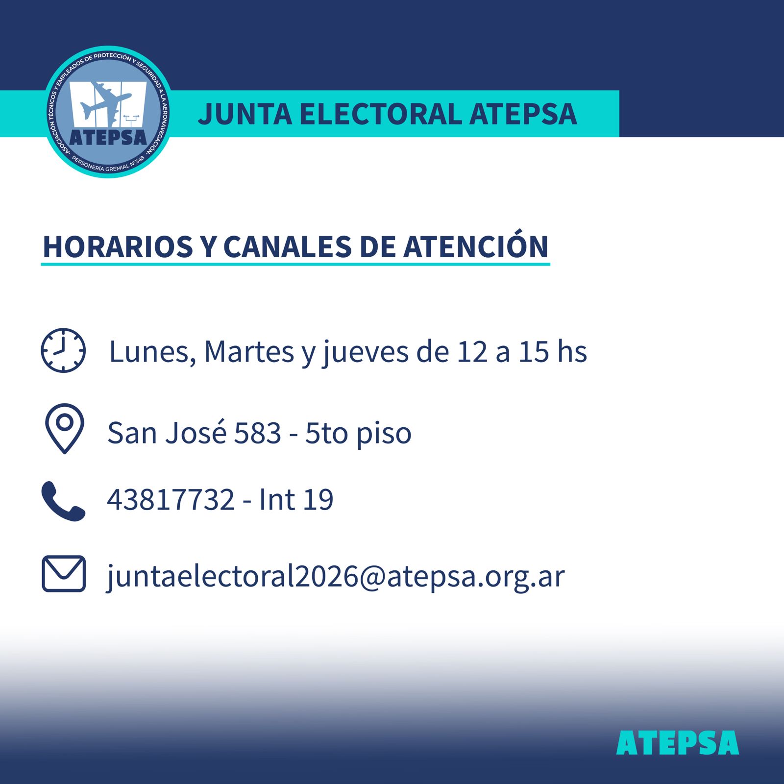 - Correo Electrónico: juntaelectoral2026@atepsa.org.ar