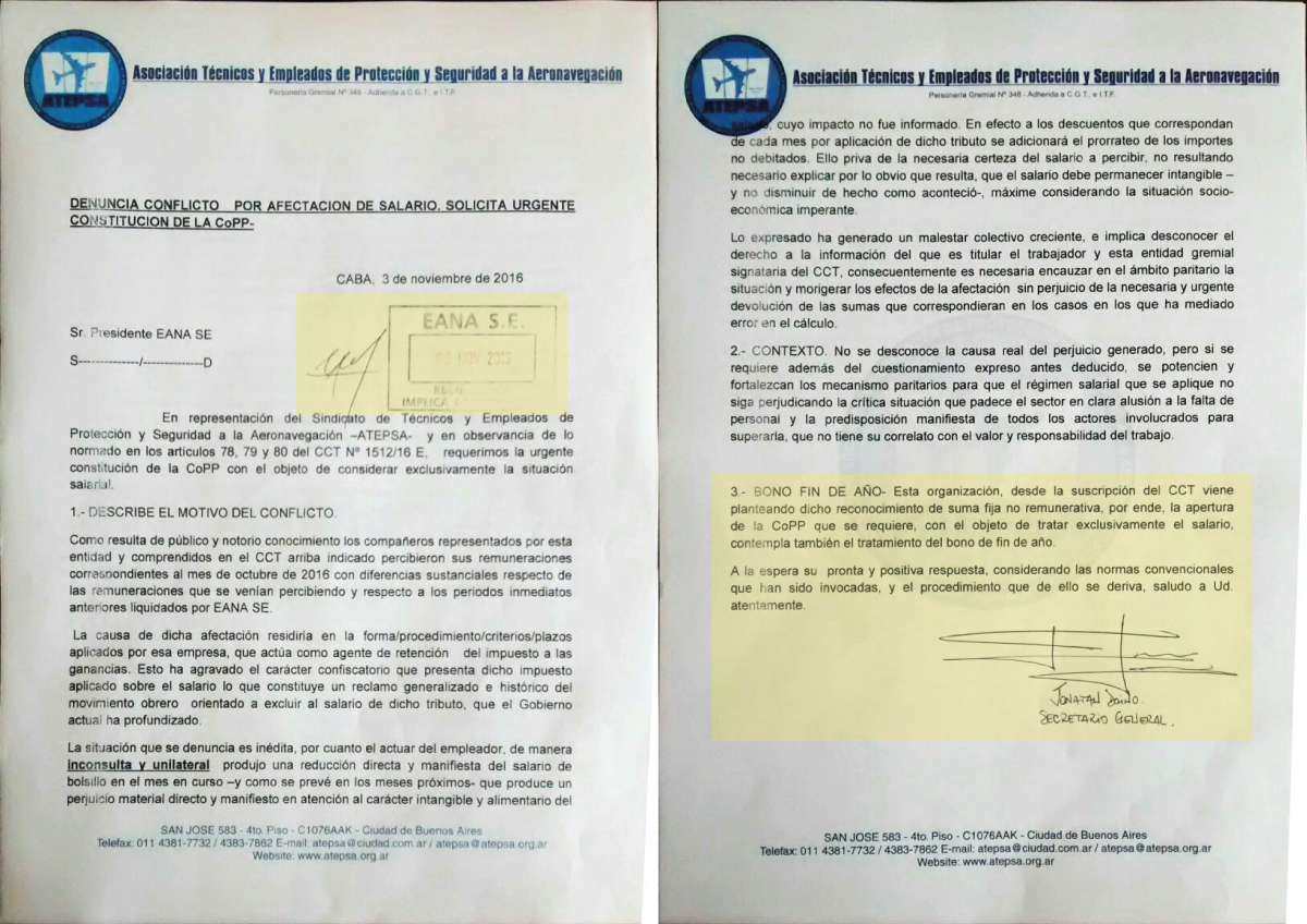En el marco de la denuncia por afectación del salario, el pasado 3/11 ATEPSA solicitó el pago de una suma fija extraordinaria de $12000. Ante el silencio de EANA, ATEPSA exige una respuesta favorable acorde a las necesidades de tod@s los trabajador@s.