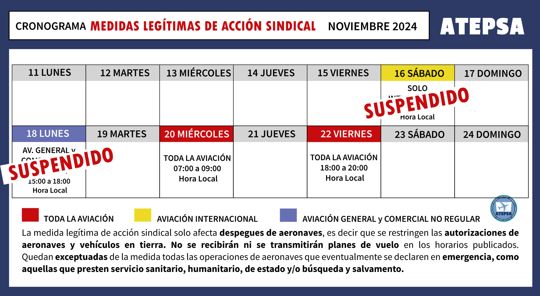 En el mismo, se informa que se abrió una mesa de negociación entre la entidad sindical, EANA y la Secretaria de Transporte a los efectos de solucionar el conflicto.